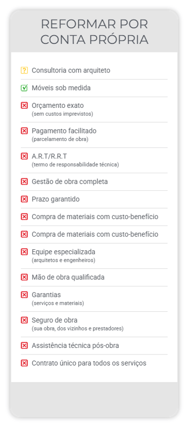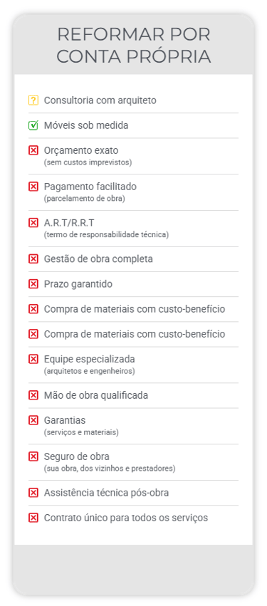 Antes de começar, entregamos um orçamento detalhado de todo o investimento que será aplicado na reforma,